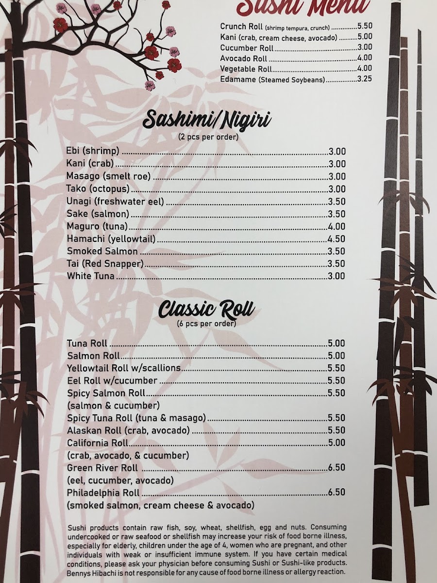 Benny's Hibachi Menu